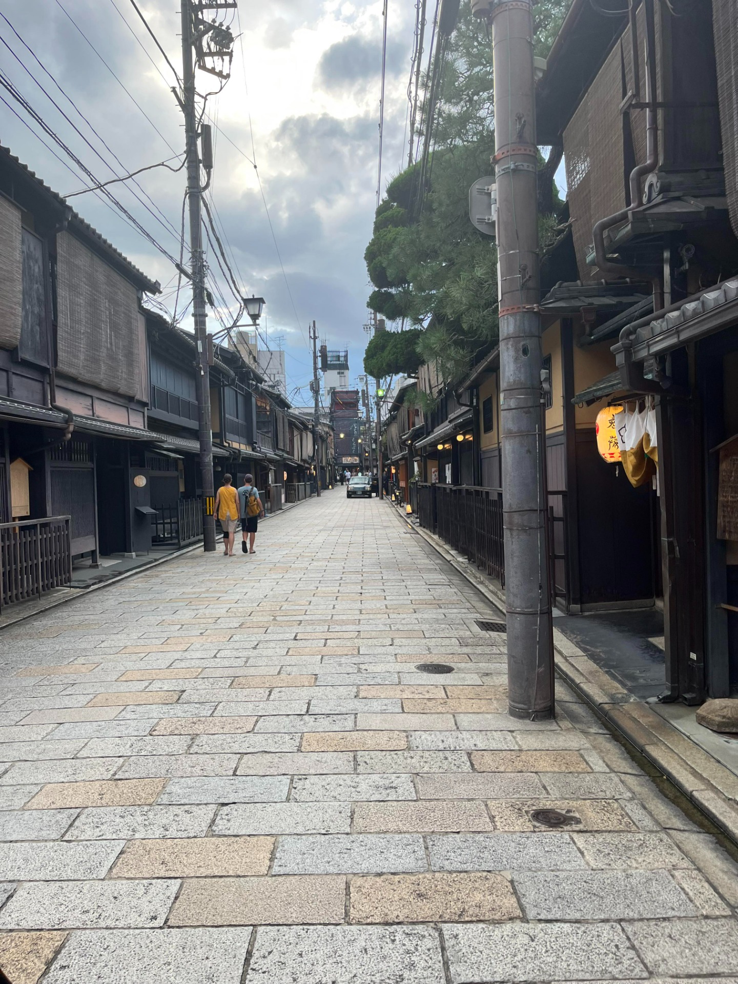 På kvelden ble vi med en lokal guide på tur i Gion-distriktet i Kyoto, kjent for geishaene. Guiden fortalte oss spennende detaljer om geishaenes historie, hvordan de lever og jobber. Vi så faktisk et par geishaer.